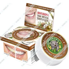 Тайская порошкообразная зубная паста Binturong из растительных компонентов имеет широкий спектр антибактериальных свойств. Она быстро и эффективно приводит в порядок микрофлору ротовой полости, предотвращает развитие кариеса и прочих зубных заболеваний.